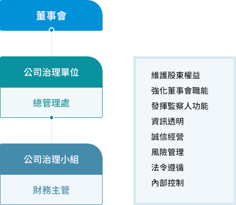 本公司设置公司治理专责单位为总管理处,负责公司治理关事务。公司治理关事务,包括下列内容: